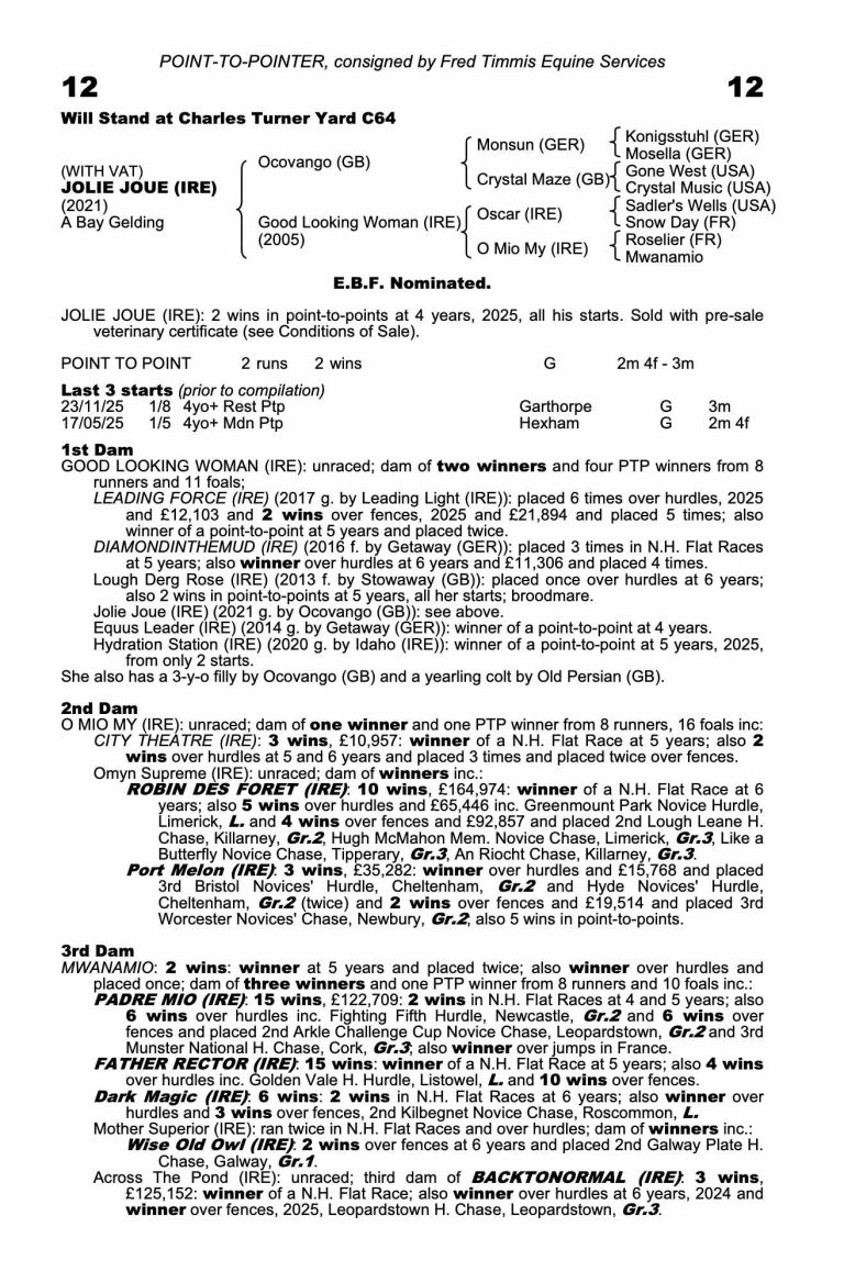 We’re excited to offer Jolie Joue as part of a new 6‑share ownership syndicate. He’s a very straightforward, talented 5-year-old gelding by Ocovango out of Good Looking Woman, and he’s already shown plenty of ability with two point-to-point wins from two runs. He’s taking racing really well and continues to improve every day at the yard.